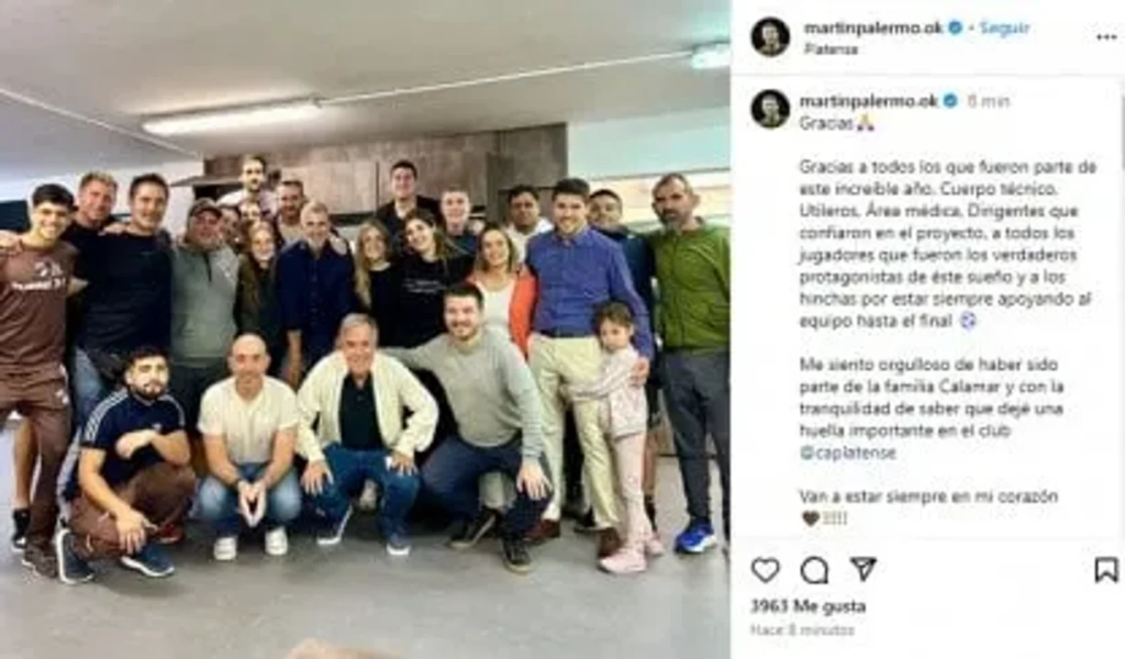 Martín Palermo, ex entrenador de Platense, publicó una sentida carta de despedida para los hinchas del club de Vicente López, luego de que el club oficializara su salida tras el histórico subcampeonato en la Copa de la Liga Profesional.