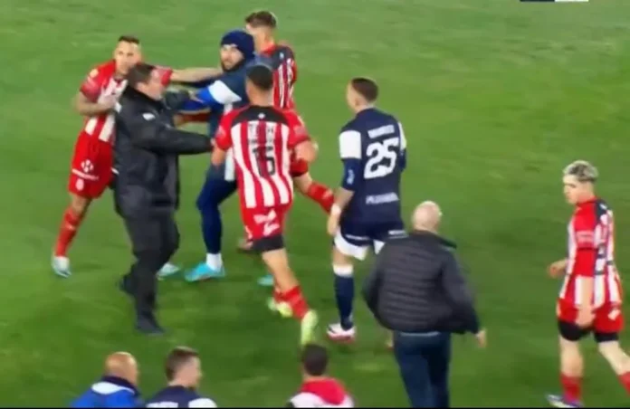 La acción derivó en un intercambio de golpes y empujones por parte de jugadores de los dos equipos.