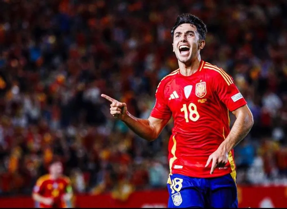España venció a Dinamarca 1-0 en la tercera fecha del Grupo D de la UEFA Nations League A 2024-2025, en un partido disputado en el estadio Nueva Condomina. El único gol del encuentro lo marcó Martín Zubimendi, quien al minuto 79 aprovechó una buena jugada para superar al arquero rival con un disparo preciso.