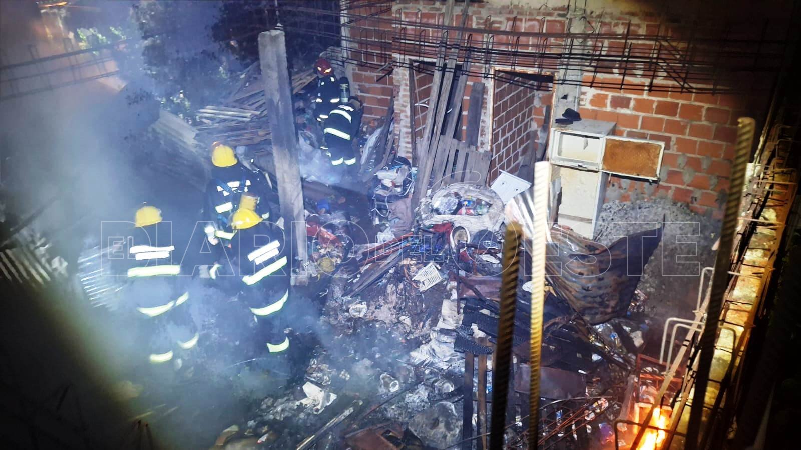 De acuerdo con las primeras constataciones, el fuego se originó en un depósito ubicado en la parte posterior de la vivienda, donde se almacenaba material reciclable, lo que habría favorecido la rápida propagación.
