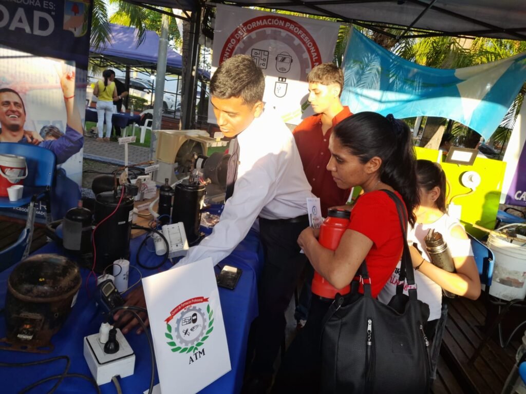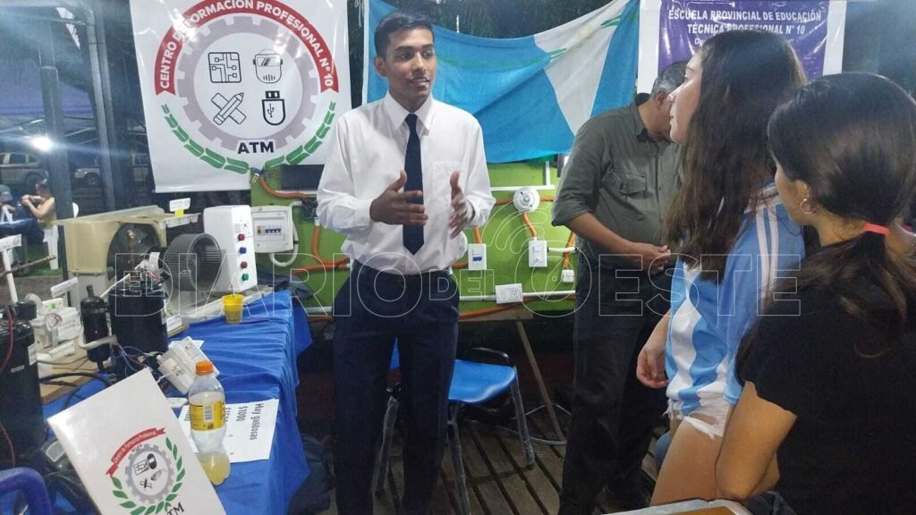 Bajo la dirección del profesor Cristian Encina, los alumnos presentaron innovadoras maquetas y proyectos didácticos, incluyendo un malacate con su unidad exterior colgada, un tablero con luces, reflector, fluorescente y fotocontrol, y una heladera portátil que llamó especialmente la atención por su funcionalidad y diseño práctico. Los alumnos evacuaron todas las dudas de los visitantes con profesionalismo, destacando su conocimiento y dominio de las temáticas abordadas.