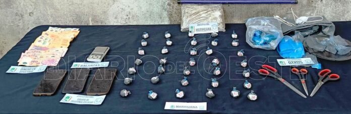 Allí detuvieron al último implicado en la actividad ilícita y secuestraron varios gramos de marihuana, teléfonos celulares, una balanza, dinero, tijeras y otros elementos utilizados para llevar adelanta su actividad ilícita.