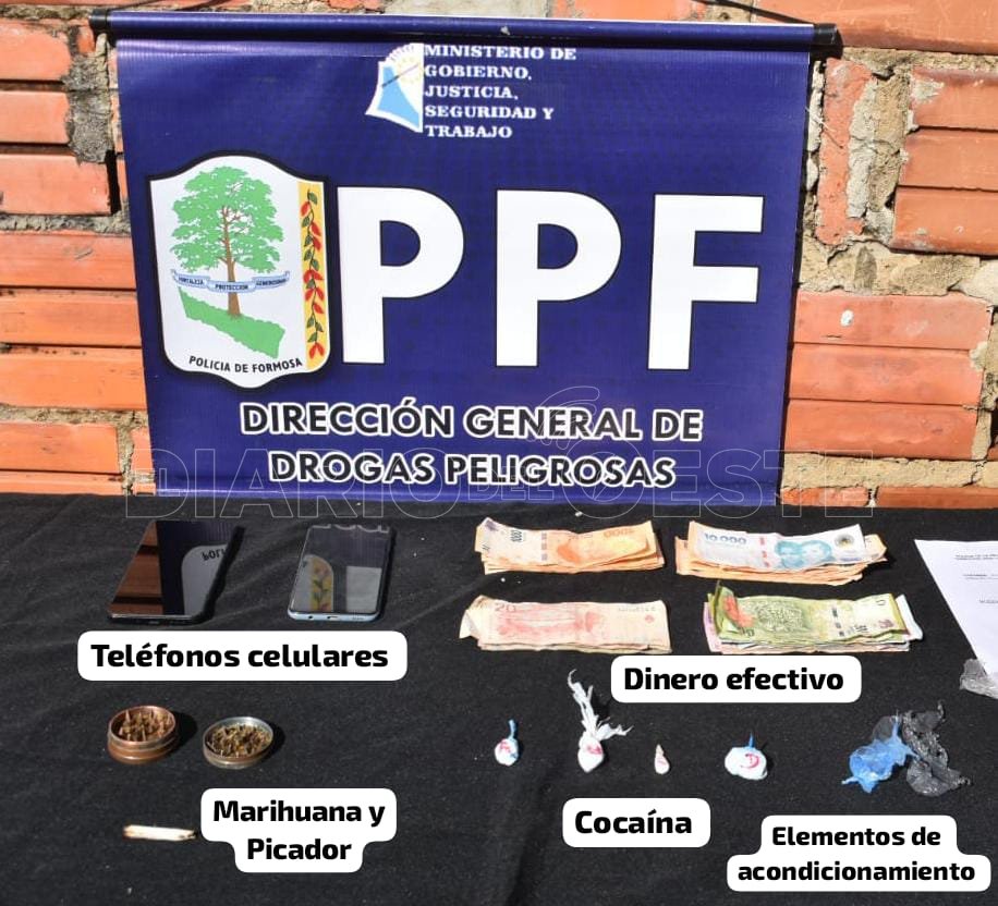 Secuestraron gramos de cocaína, dinero, teléfonos celulares, elementos de acondicionamiento, triturador de marihuana y un cigarrillo de marihuana parcialmente consumido, entre otros