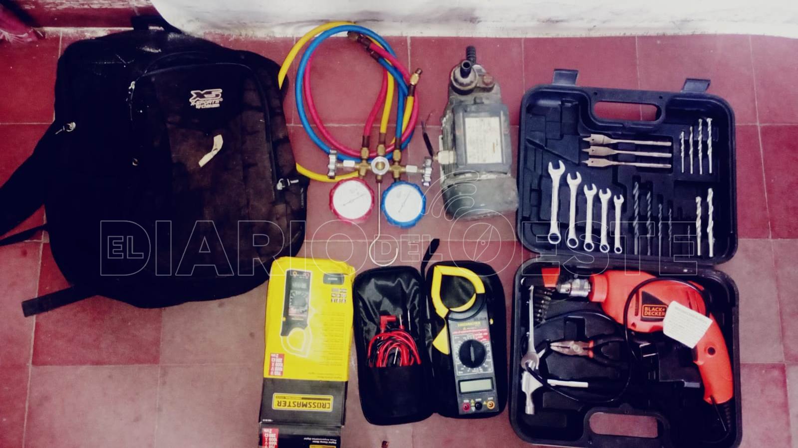 En el lugar se labraron las actuaciones procesales y en presencia de testigos secuestraron un tester amperímetro, un manómetro de presión, un maletín con un taladro, 41 piezas y un motor elevador de agua.