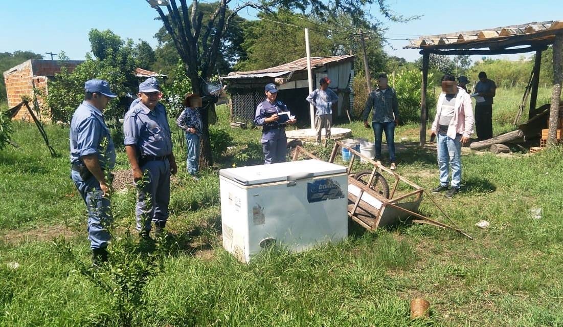 Los uniformados rápidamente acudieron al lugar y a pocos metros de la casa hallaron en una zona boscosa una heladera, un tubo de gas y una motoguadaña, todo documentado y secuestrado.