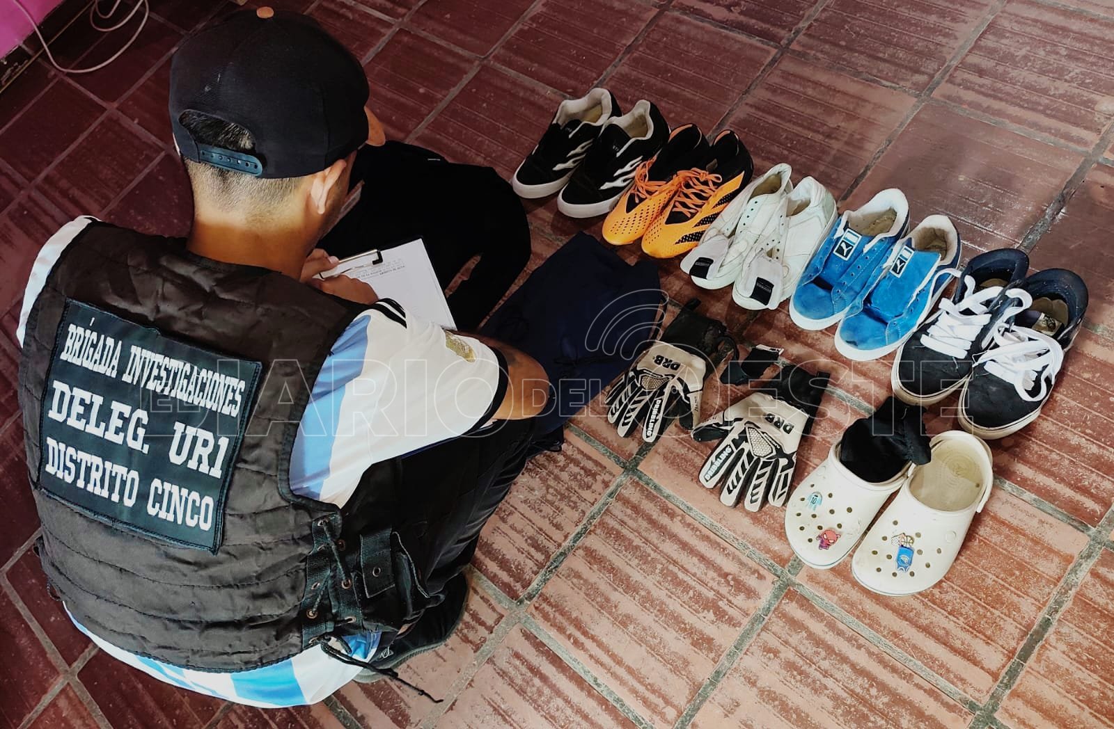 En el lugar, con la participación de la Delegación de Policía Científica, documentaron el secuestro de un par de botines, varios pares de zapatillas, crocs, calza térmica, entre otros bienes.