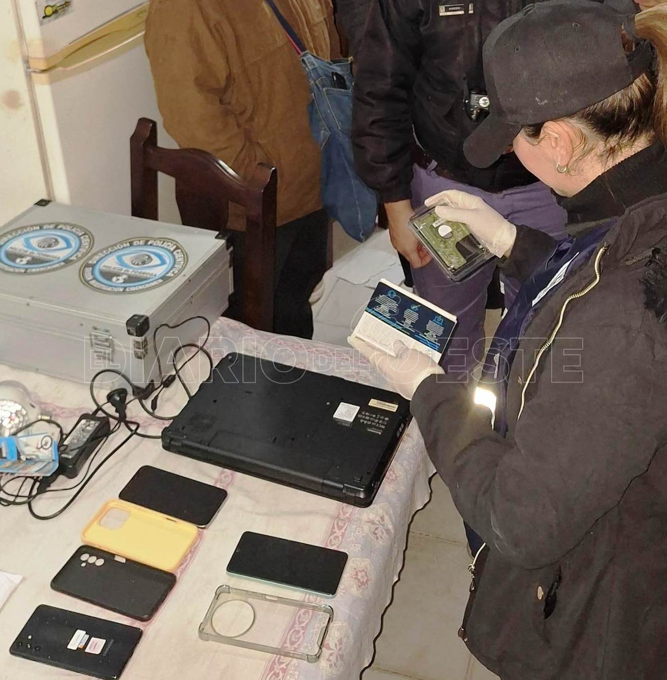 Efectivos de la División Delitos Complejos, del Departamento Informaciones Policiales, secuestraron notebooks, teléfonos celulares, tablet, DVD y pendrives, durante los allanamientos en el barrio San Martín, de esta ciudad, en el marco de un operativo internacional contra la explotación sexual de niños, niñas y adolescentes.