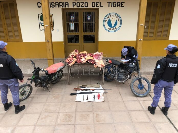 Las requisas dejaron como resultado la detención de los dos sujetos y el secuestro de una escopeta calibre 16, un rifle calibre 22, cuatro cuchillos, prendas de vestir de los sujetos que poseían manchas de sangre, un plantín de marihuana y un total de 120 kilos de carne vacuna.