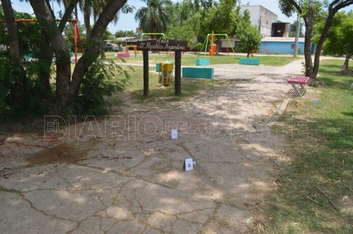 Además se verificó el sector de la plaza donde se produjo el desafortunado caso y se constató manchas de sangre y restos de botellas.