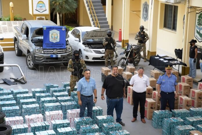 Un intenso trabajo de efectivos de la Dirección General de Drogas Peligrosas concluyó con la detención de tres hombres, el millonario secuestro de cigarrillos y cubiertas de contrabando; más un auto Toyota Corola, dos motos adulteradas y dos camionetas: entre las cuales está la Volkswagen Amarok sustraída días atrás del depósito judicial del Escuadrón 5 “Pirané” de Gendarmería Nacional.