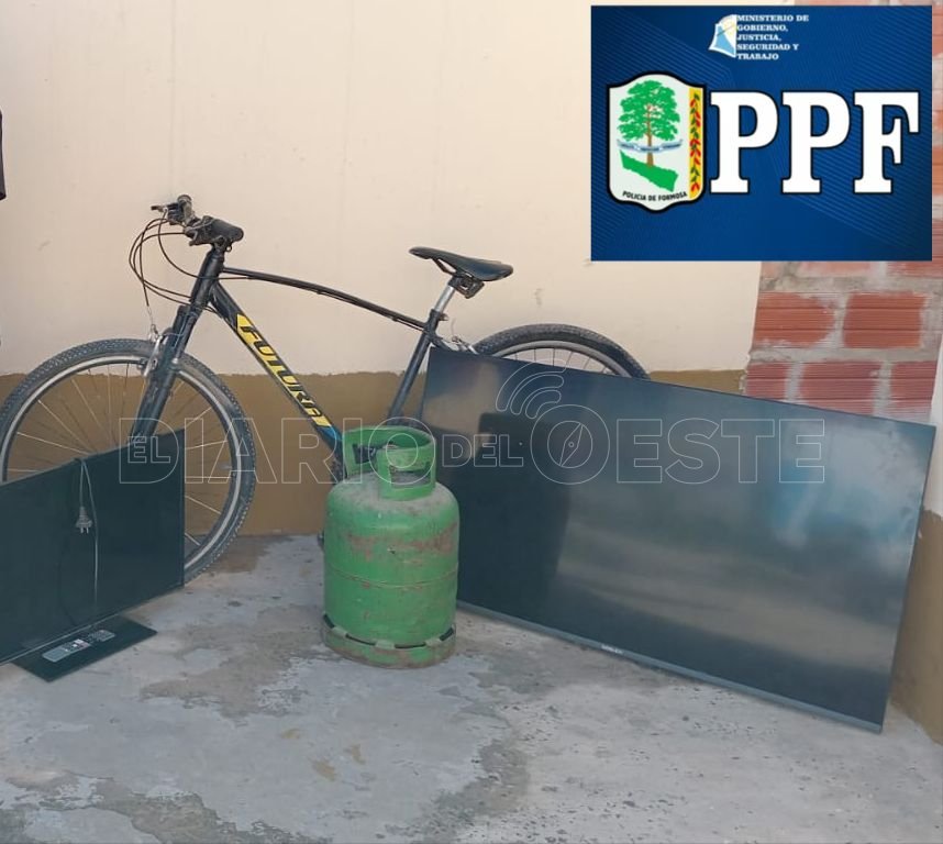 La Policía recuperó un Smart Tv de 50 pulgadas, otro de 32 pulgadas, un tubo de gas de 10 kilos y una bicicleta rodado 29, además de la aprehensión del sospechoso.