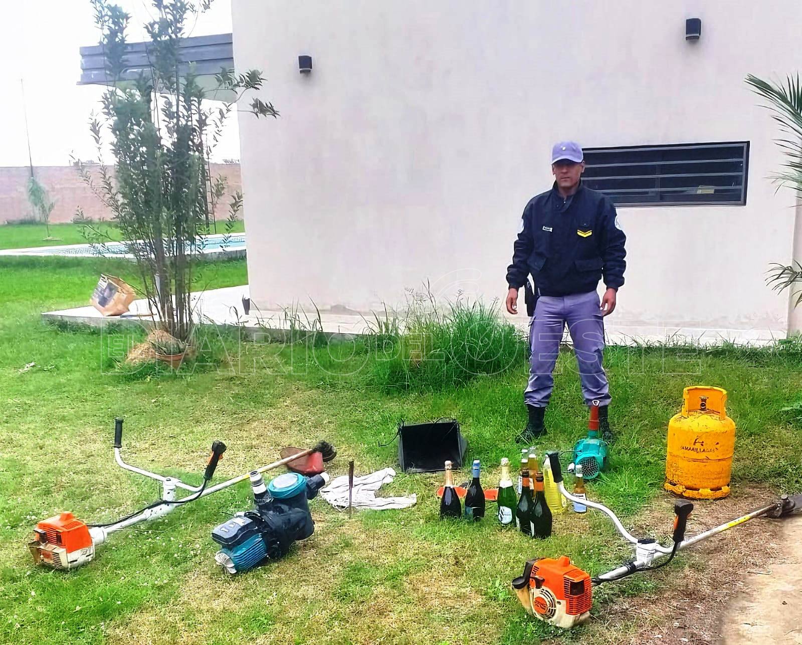 Efectivos de la Subcomisaría Puente Uriburu recuperaron un tubo de gas, dos motoguadañas, dos motores de presión de agua y un contenedor de máquina cortadora de césped, entre otros elementos que fueron sustraídos de una vivienda del barrio Virgen del Carmen de esta ciudad.
