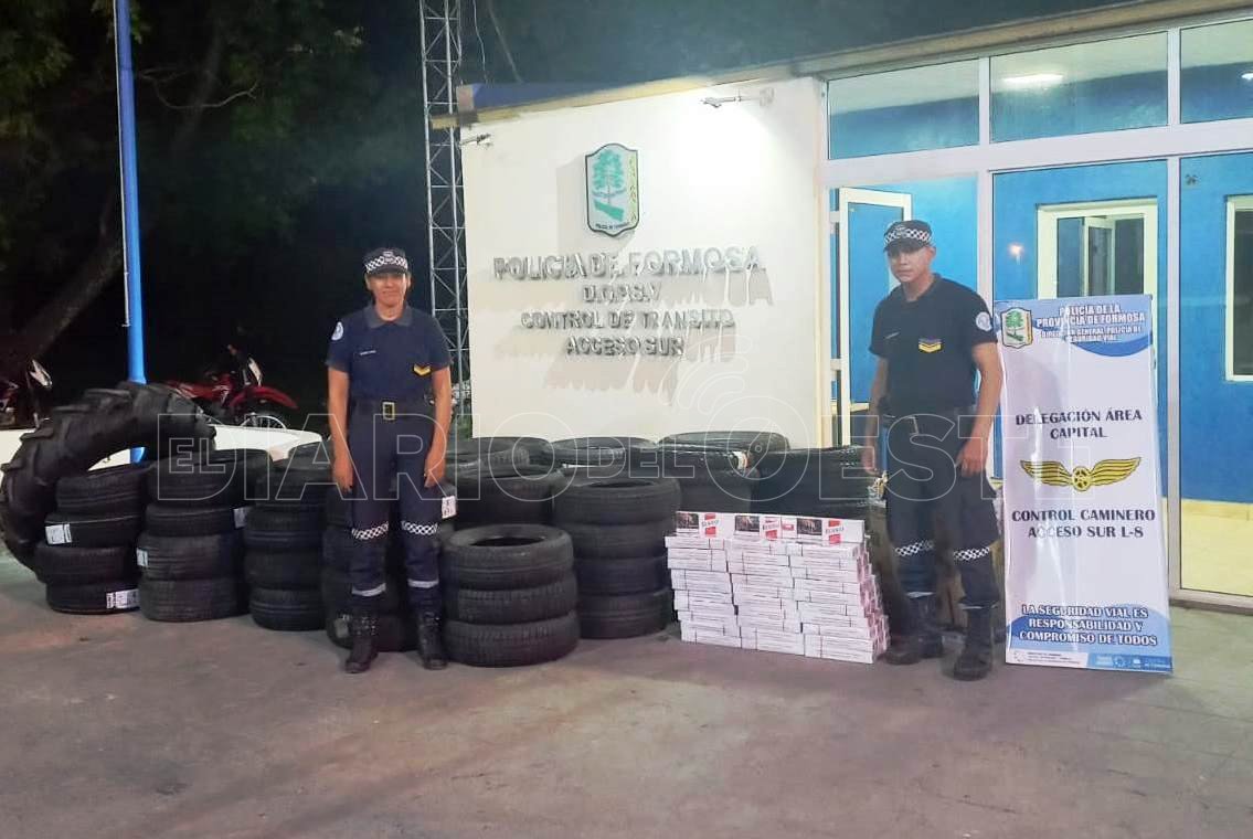 Efectivos del Control Caminero Acceso Sur, de la Dirección General de Policía Seguridad Vial. demoraron en la Ruta Nacional N° 11 al conductor de un camión con encomiendas, quien trasladaba 63 cubiertas de vehículos, 22 cubiertas de motos, 93 gruesas de cigarrillos y electrodomésticos de origen extranjero, sin aval aduanero, por un valor en el mercado de 11.900.000 pesos.