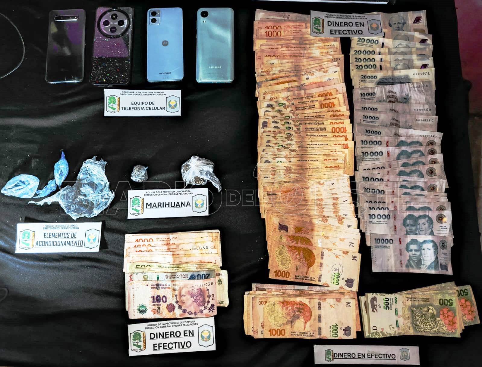 Efectivos de la Dirección General Drogas Peligrosas detuvieron a tres sujetos, secuestraron cocaína, marihuana, teléfonos celulares y dinero, tras un allanamiento en el barrio Antenor Gauna, de esta ciudad.