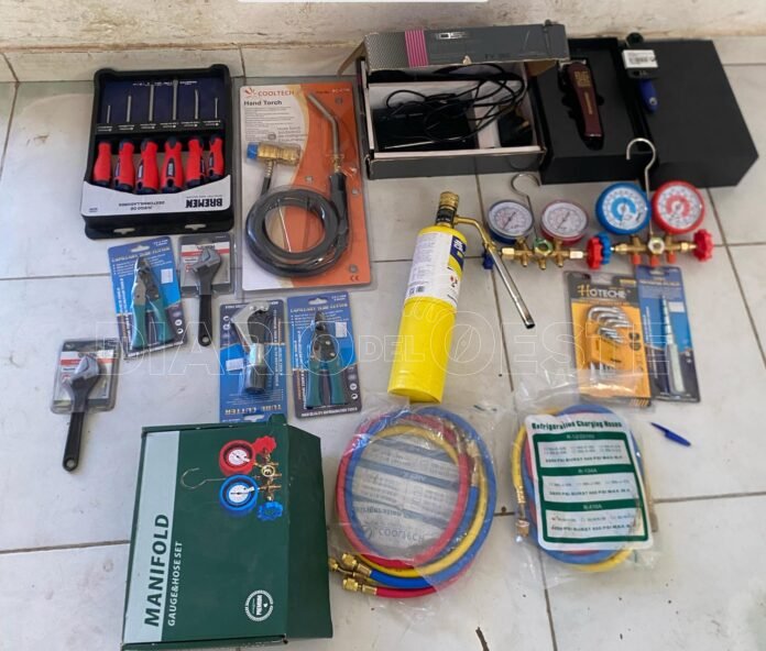 Entre los elementos recuperados se encontraban cortadoras de caño, llaves francesas, juegos de destornilladores, una ensanchadora, una llave criquet, mangueras para soplete, un tubo o garrafa MAP utilizada para trabajos de refrigeración, un micrófono con amplificador, entre otros objetos.