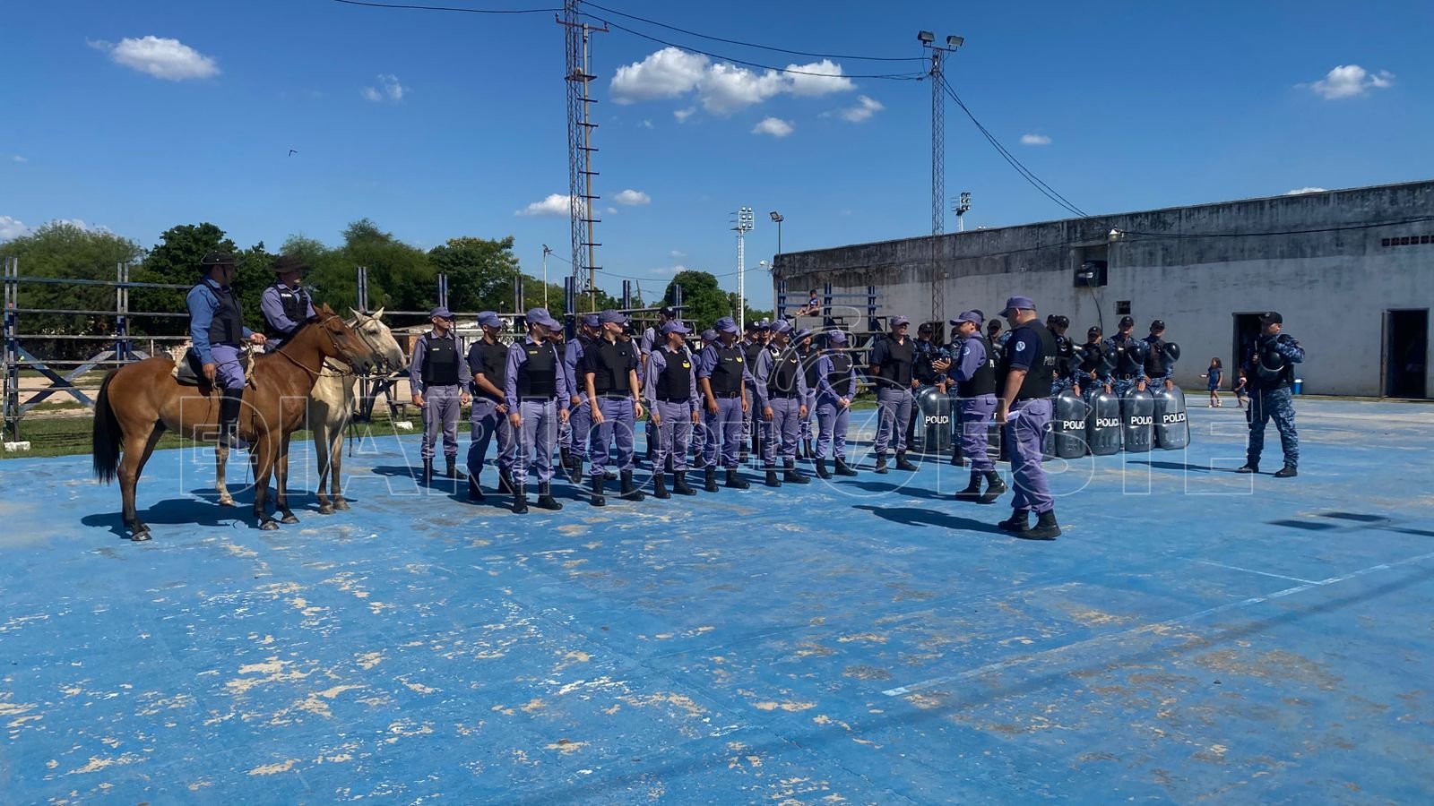 Efectivos de la fuerza provincial afectados al servicio de seguridad deportiva en la cancha de club Juventud intervinieron y efectuaron disparos disuasivos con posta de gomas para