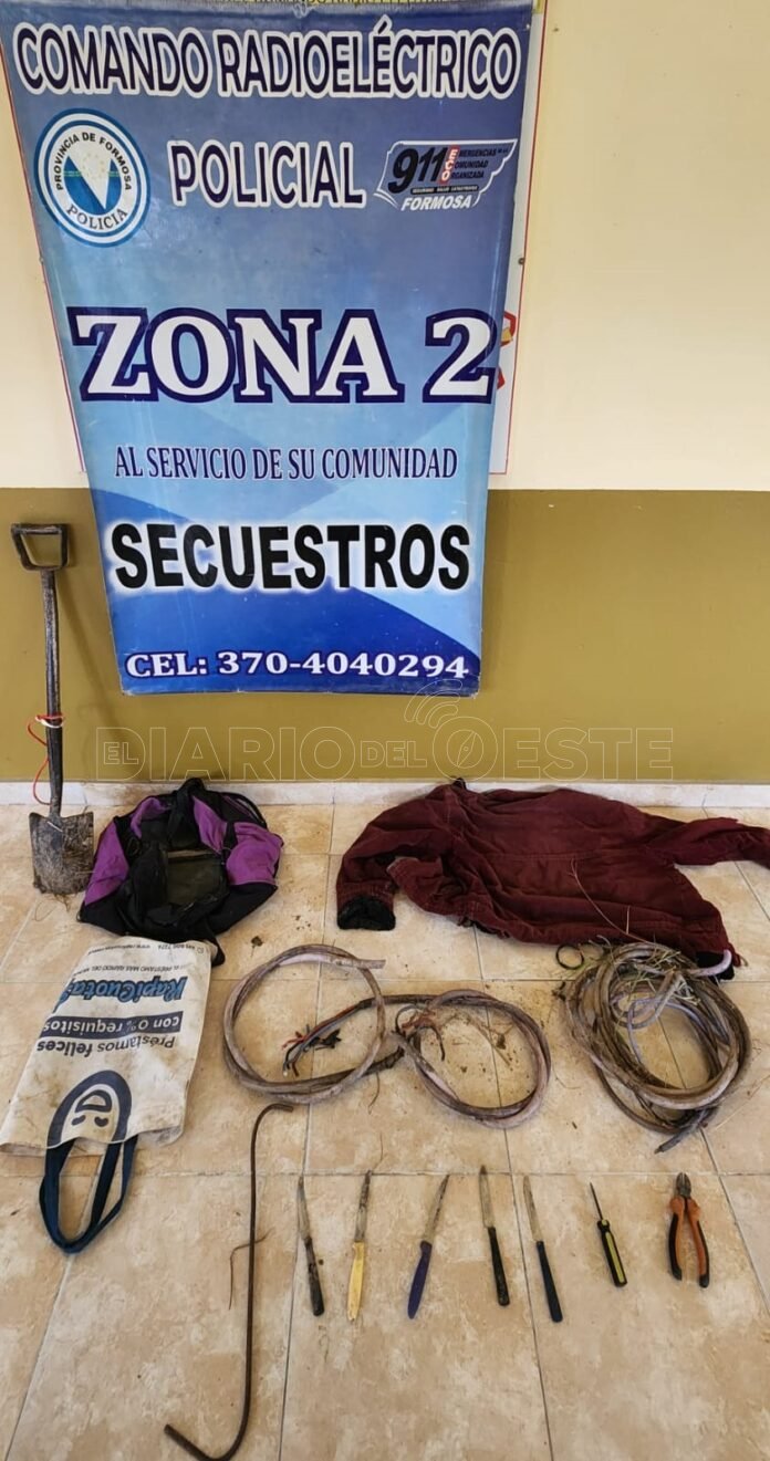 Al percatarse de la presencia policial huyeron del lugar y dejaron abandonados varios metros de cables dentro de un bolso, más prendas de vestir y herramientas.