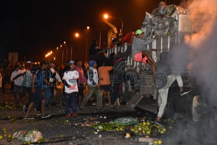Posteriormente, los inadaptados incendiaron el camión que protagonizó el siniestro y sustrajeron las mercaderías que transportaba, entre ellos frutas y verduras.