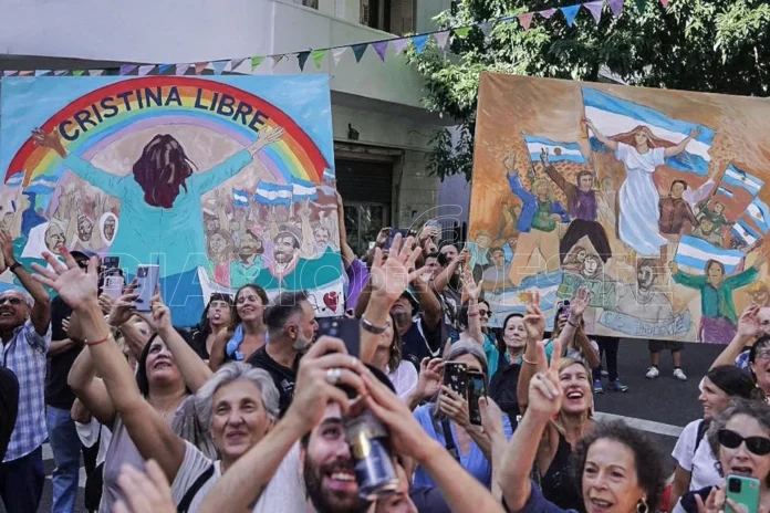 Una veintena de artistas se congregaron frente a San José 1111, domicilio donde Cristina Fernandez de Kirchner cumple su condena domiciliaria, para demostrarle su apoyo y cariño. La actividad fuer organizada en el marco de la campaña “Cristina Libre”, impulsada por el Instituto Patria para reclamar por su libertad y concientizar alrededor de todo el mundo sobre su proscripción. “Queremos que sienta el amor del pueblo todo el día”, afirmó la cantante folklórica Teresa Parodi.