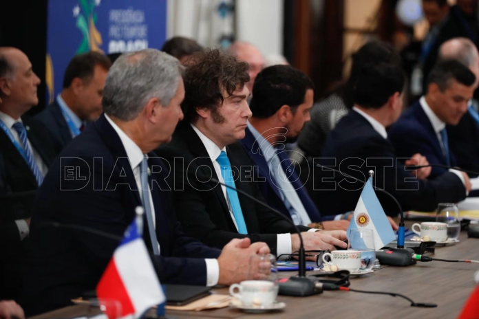 Durante su disertación en la cumbre que se realiza en la ciudad brasileña de Foz de Iguazú, Milei agradeció el recibimiento por parte de Brasil, saludó a sus pares Santiago Peña (Paraguay), Yamandú Orsi (Uruguay) y José Raúl Mulino (Panamá), al tiempo que volvió a felicitar al pueblo chileno por “la jornada ejemplar” en la que resultó mandatario electo José Antonio Kast, a quien definió como “mi gran amigo”.