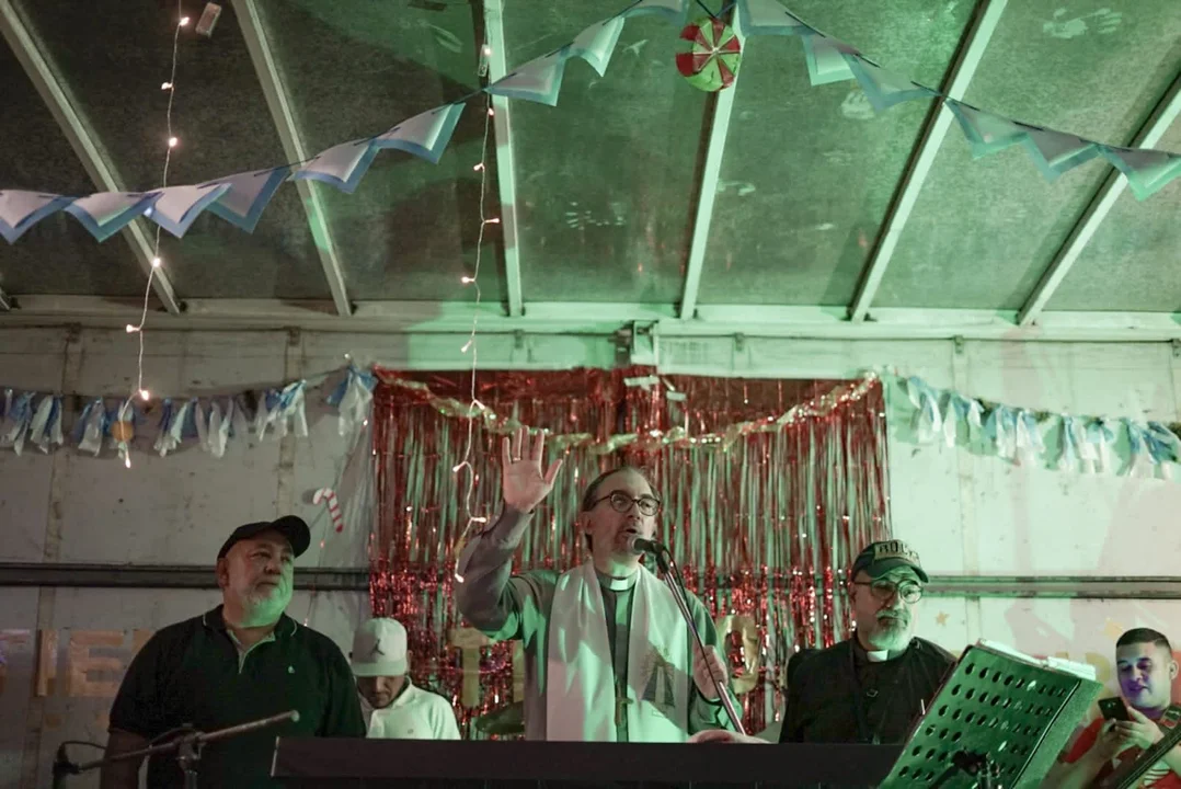 Durante la noche y en la previa a la cena que contó con la convocatoria de más de cuatro mil asistentes, el artista Santiago Motorizado cantó en vivo para los presentes y el Obispo Gustavo Carrara realizó una bendición.
