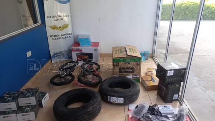 Efectivos de la fuerza provincial secuestraron cámaras de seguridad, consolas, hornos eléctricos, teléfonos, cubiertas, bicicletas, entre otros elementos, todos de origen extranjero, que eran transportados en un automóvil Renault Clío al mando de un hombre, sin aval aduanero.