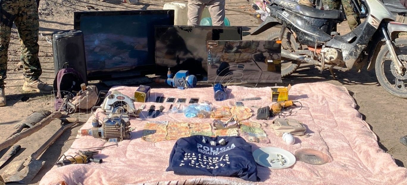 También hallaron elementos mal habidos que los infractores recibieron como parte de pago para la adquisición de estupefacientes, tratándose de dos motores elevadores de agua, una amoladora, un taladro, tres televisores, una sierra circular para cortar madera, una mochila con herramientas varias, dos palas, un parlante, entre otros, los que fueron secuestrados.