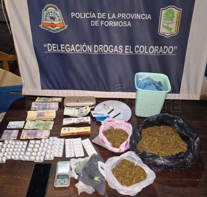 Investigadores de la Dirección General de Drogas Peligrosas, Delegación El Colorado, allanaron una vivienda, detuvieron a una mujer y secuestraron cocaína y marihuana.