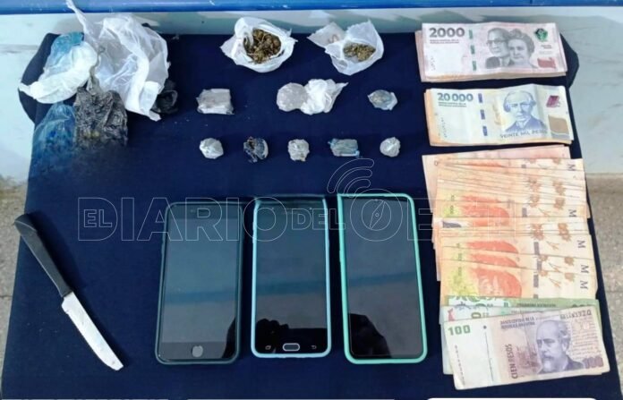 Allí secuestraron 10 envoltorios de marihuana, tres teléfonos, más de 63 mil pesos, un cuchillo de mesa con restos de droga, elementos de corte y varios retazos de bolsas de polietileno para el acondicionamiento.