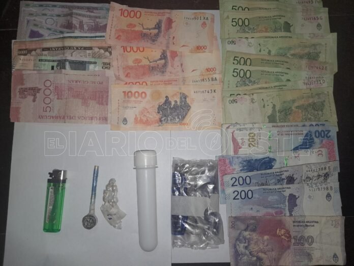 Durante el cacheo preventivo de seguridad, encontraron entre sus prendas un paquete de polietileno conteniendo una sustancia vegetal, un tubo de plástico que tenía 18 envoltorios de un material marrón, similar a la pasta base de cocaína, dinero y una pipa de fabricación cacera, entre otros objetos.