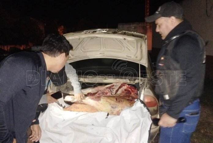 Horas después, los investigadores detuvieron la marcha de un automóvil Chevrolet Corsa, en el que dos sujetos trasladaban productos cárnicos sin poder justificar la procedencia, razón por la cual se detuvo a los ocupantes y se procedió al secuestro de la carne y el vehículo.