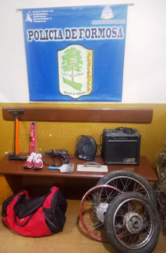 Con la información obtenida, se retuvo a un menor de 17 años en la vía pública. En la casa del menor, un familiar entrego voluntariamente parte de los bienes sustraídos que se encontraban en un bolso; entre ellos pinceles de diferentes tamaños, un par de zapatillas, un fratacho mediano de madera, un amplificador de audio, un inflador y un caloventor.