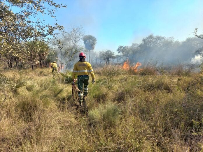 Integrantes del Destacamento de Bomberos del barrio La Nueva Formosa, fueron requeridos el domingo último, alrededor de las 13:30 horas, ante un incendio sobre pastizal y campo en el loteo Don Juan.