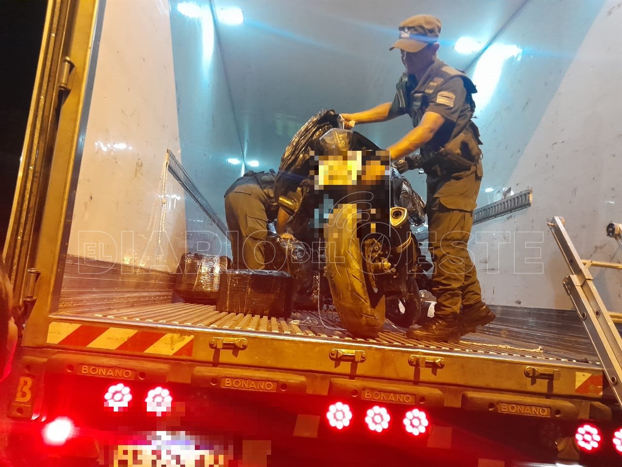 Al revisar la encomienda, los efectivos de Gendarmería hallaron Dos (2) las cuales contenían Un (1) motovehículo (ENTERA) marca KTM modelo DUKE 390 y Un (1) motovehículo desarmado en Cinco (5) bultos marca Yamaha modelo MT 03. Tras consultar el Sistema Federal de Comunicaciones Policiales, se confirmó que los elementos incautados poseían pedido de secuestro solicitado por el AMBA (Área Metropolitana de Buenos Aires).