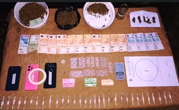 El mandamiento judicial fue concretado el jueves último en el inmueble de la calle Córdoba casi Paraguay, del barrio San Cayetano, donde se secuestraron 31 “porros”, dos recipientes con una sustancia vegetal disgregada, papel engomado, 25 dosis de LSD, 50.700 pesos, tres teléfonos celulares y un picador.