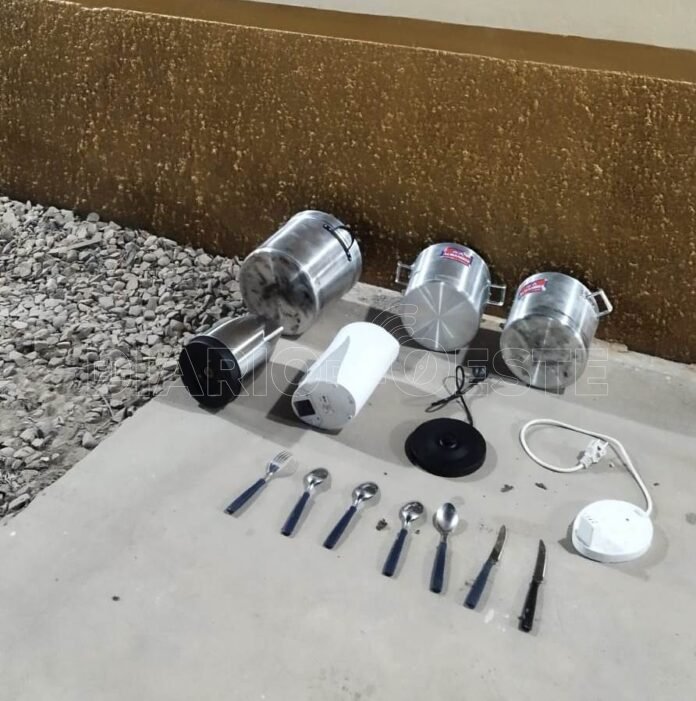 En continuidad con la investigación, alrededor de las 15:00 horas integrantes de la comisaría, encontraron tres ollas de aluminio, dos jarras eléctricas y varios cubiertos, en avenida 9 de julio y Ruta Provincial 27.