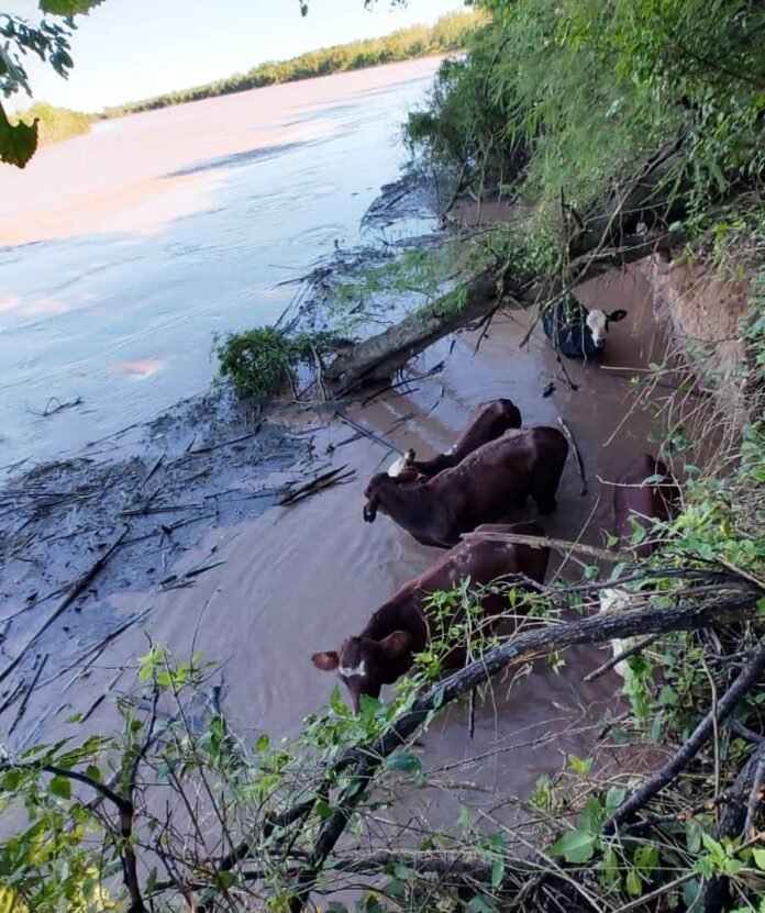 Allí, el administrador del establecimiento ganadero informó a los servidores públicos que el jueves se desmoronó la barranca y unos 25 novillos cayeron al cauce del Río Bermejo; luego nadaron hacia la orilla donde quedaron varados.