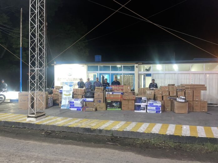 Durante la verificación, se comprobó que el ómnibus transportaba 112 cajas de ventiladores de 3 unidades cada uno, 17 aires Split, un dispenser, cuatro hornos eléctricos, cuatro televisores de diferentes pulgadas, 12 parlantes, seis cepillos alisadores, seis cámaras de seguridad, 18 cocinas anafe, seis balanzas, 30 licuadoras, 10 cocinas y nueve jarras eléctricas.