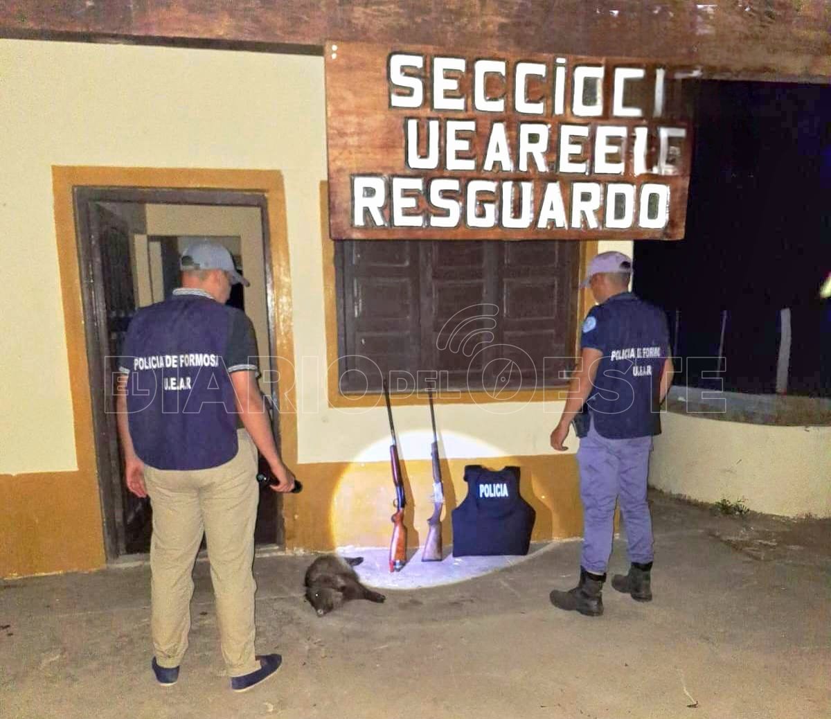 Luego constataron que dos sujetos caminaban hacia el vehículo y estaban armados con dos escopetas y un animal silvestre sacrificado.