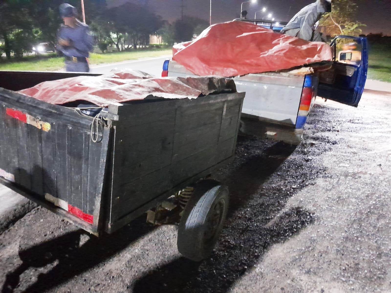 Alrededor de las 21:30 horas del viernes, integrantes de la fuerza provincial que recorrían la zona, observaron que una camioneta Ford F-100 circulaba por ruta transportando un acoplado enganchado en la parte posterior, con las luces apagadas.