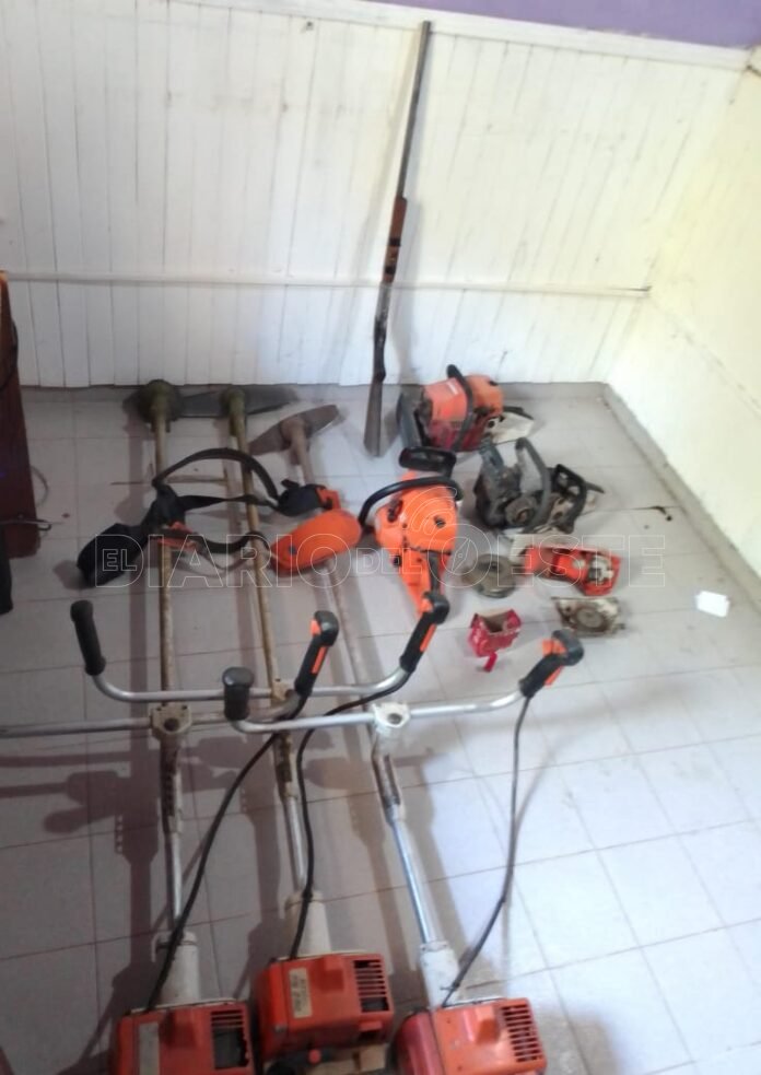El jueves último en horas de la siesta, se llevaron adelante cuatro allanamientos en los barrios Pasarela y colonia Villa Rural, como resultado se secuestraron tres motoguadañas, tres motosierras, una pechera, una escopeta calibre 16 y cartuchos del mismo calibre. También se detuvo a cuatros sujetos que habrían tenido participación en el hecho.