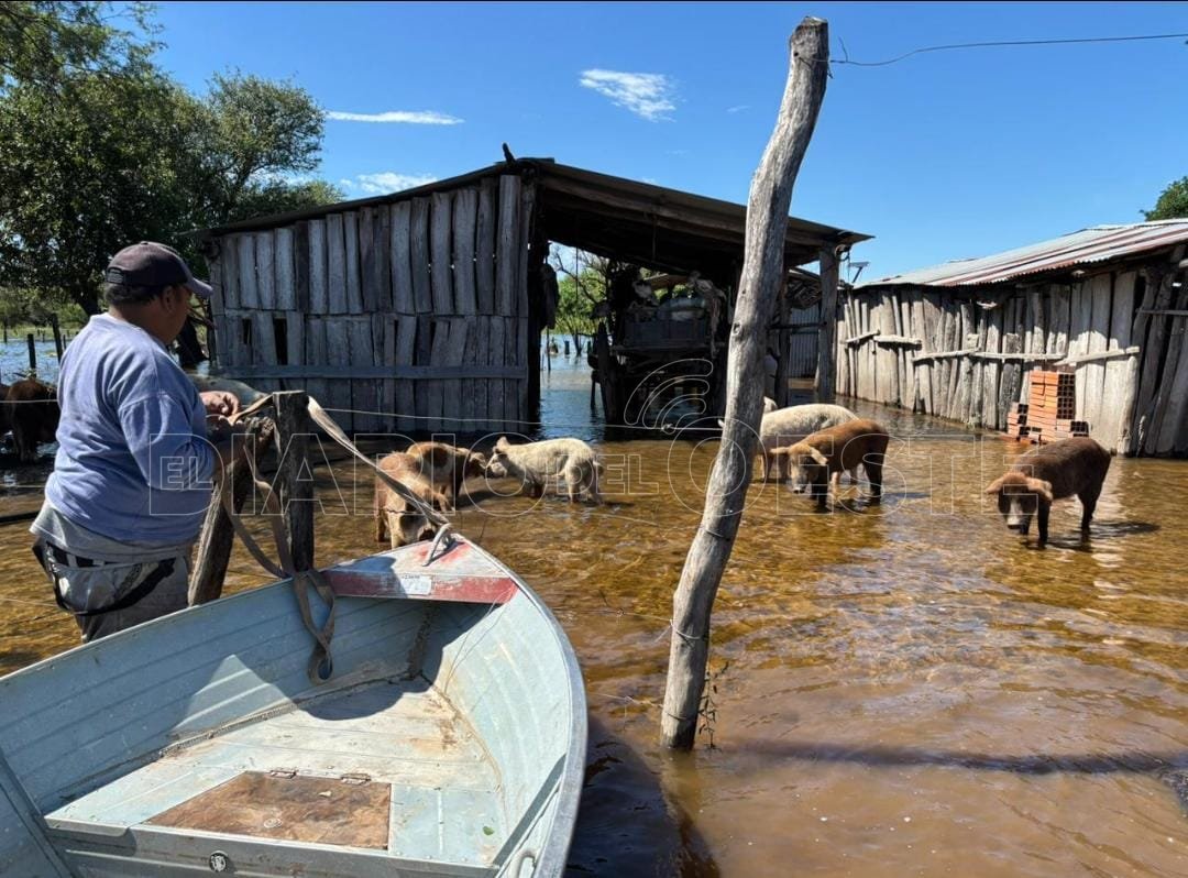 Efectivos de la Unidad Regional Cinco, Comisaría Pozo del Tigre, junto al Intendente municipal, asistieron a pobladores del paraje Palma Mota; también realizaron relevamientos y brindaron ayuda a ganaderos afectados por la crecida del agua del Bañado La Estrella.