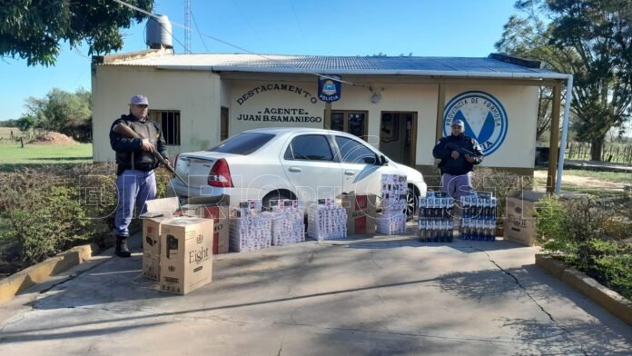 Efectivos de la fuerza provincial demoraron a un hombre de 29 años, secuestraron un automóvil Toyota Etios y 300 gruesas de cigarrillos, ingresados al país por lugares no habilitados.