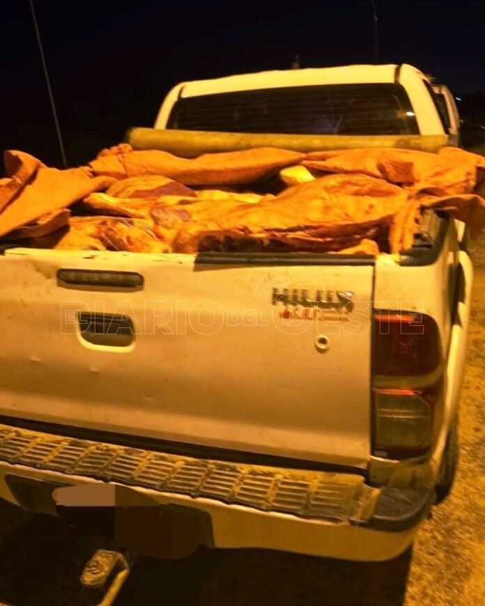 Allí identificaron al conductor de una Toyota Hilux, luego constataron que transportaba 700 kilos de carne vacuna, producto del sacrificio de tres animales.