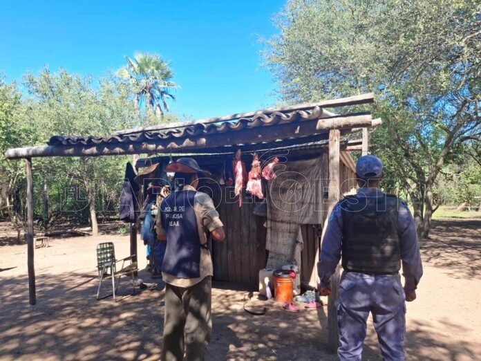 Efectivos de la Subcomisaría Fortín Lugones y de la Unidad Especial de Asuntos Rurales (UEAR), Sección San Martín Uno, secuestraron reses de carne caprina faenada y 16 rollos de alambres; mientras sigue la investigación para detener a los autores de un caso de abigeato y robo.