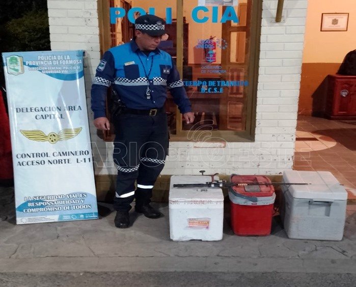 El domingo último, efectivos de la D.G.P.S.V. del Puesto de Control Acceso Norte realizaron control vehicular y demoraron un automóvil Volkswagen Gol conducido por un hombre de 38 años que transportaba elementos de pesca y dos conservadoras con varias piezas de peces.