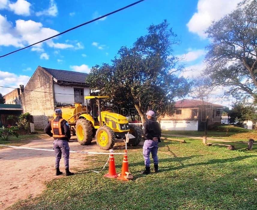 Según el testimonio de otro obrero, realizaban tareas de desagote de cámara séptica y al cargar aceite en el depósito del acoplado fue atrapado por la barra de tiro del tractor.